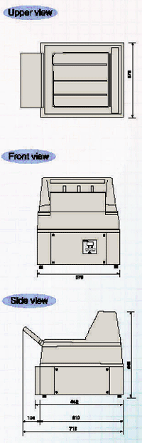 The operation panel is compact in size and is Equipped with simple mode control keys. The Running speed and time, dev/ fix/wash replenish, Dev/.fix temperature, dry temperature can be easily Set using the mode key and the up/ down key |